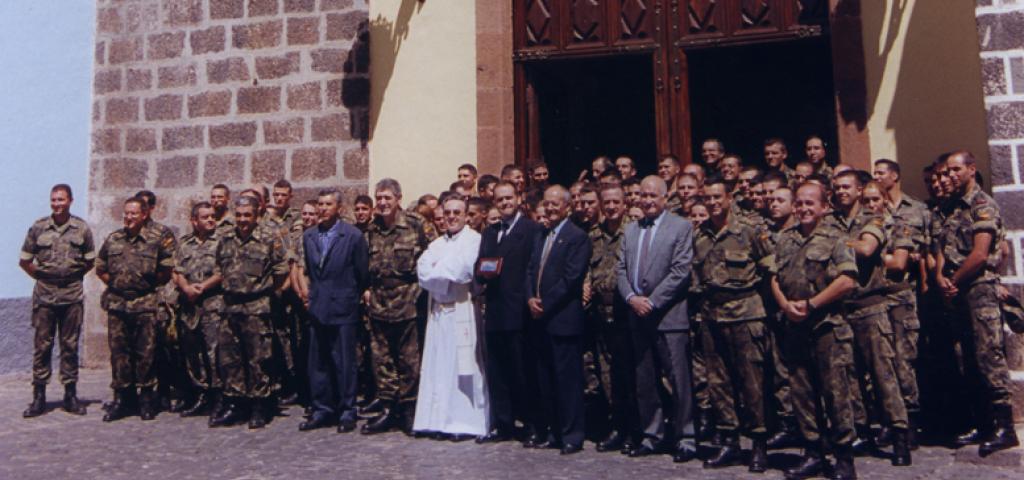 El queridísimo capellán del Regimiento, padre Don Santiago Esteban Hernando, dirigió unas elocuentes y diáfanas palabras a todos los presentes, haciendo un llamado al rescate del valor espiritual y de las más bellas tradiciones, como base fundamental del enriquecimiento personal como reflejo a la sociedad del valor que tenemos como hijos de Dios; luego obsequió una estampa de la santísima imagen a todos los asistentes ofreciendo una oración como gesto de unión y lazo perpetuo entre los artilleros y el Santísimo Cristo de La Laguna.
